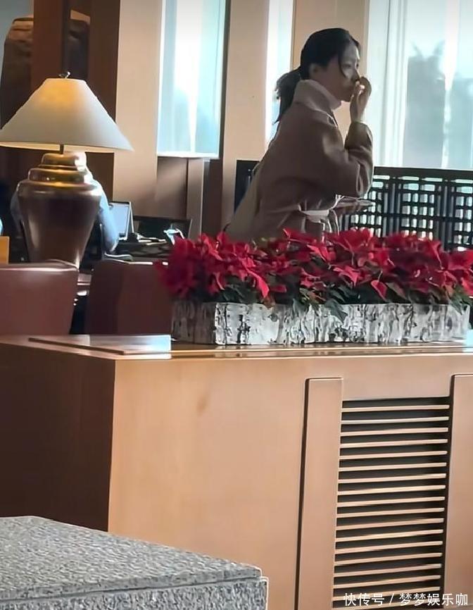 那身打扮让人想起她在《火花》里的时尚样子,二十五年过去了,她的风采依旧鲜活,不见岁月的痕迹。一会儿她走向休息区落座,场面安静祥和。此时,已经有一位男子在那等她,这人头戴黑帽,戴着眼镜,黑色外套包裹全身,是她丈夫郑豪泳。