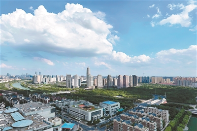 河南郑州蓝天白云,空气清新。中新社记者 李超庆 摄