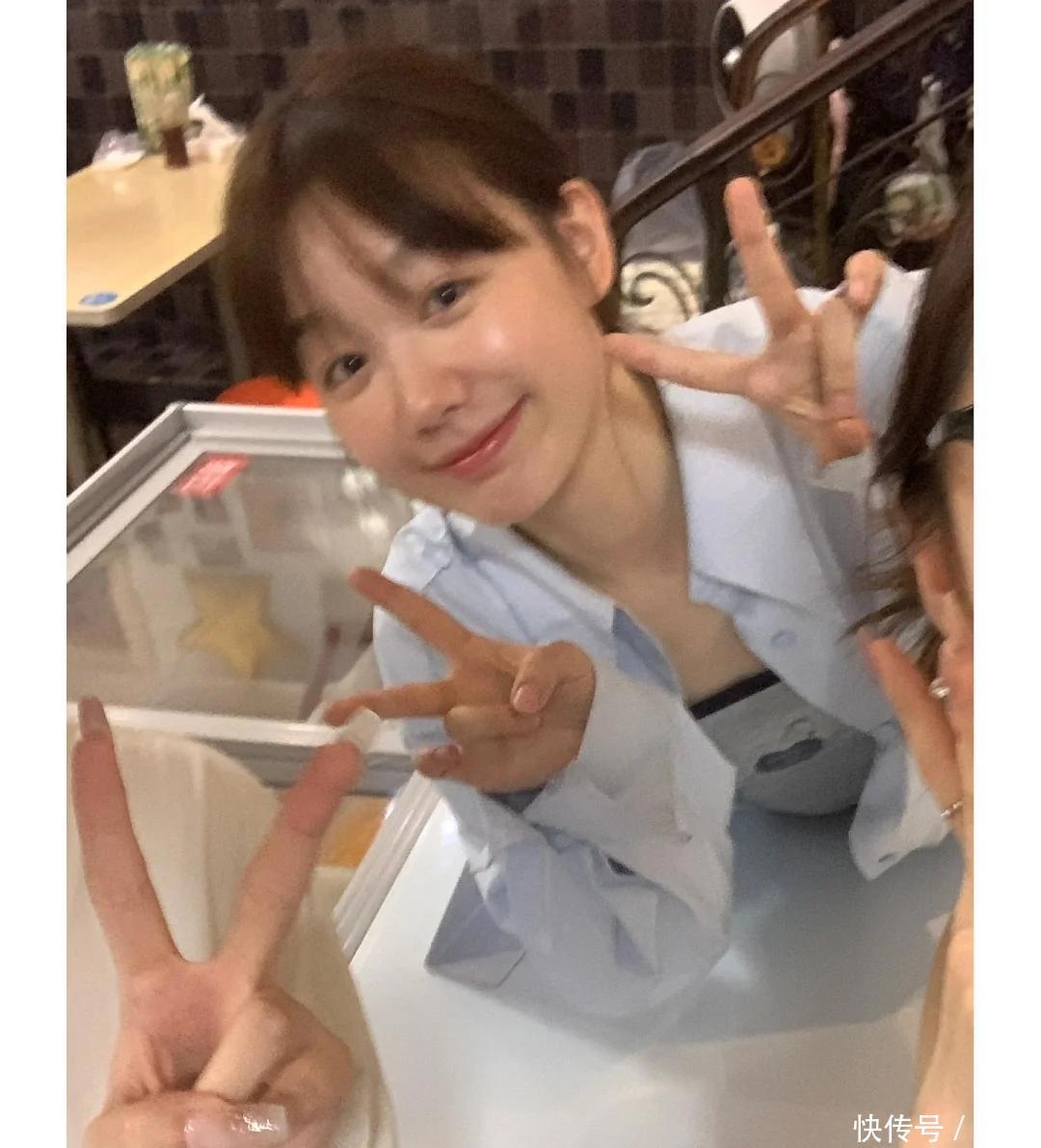 前阵子,有一个网友在街头碰巧遇见了她,那会儿她穿着一件蓝色衬衫搭配牛仔裤,扎着个低马尾,脸上没有浓妆,只轻抹了一点淡粉色口红,看起来挺自然的。