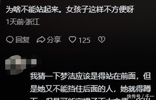 跪下之后,徐梦洁不见得有啥不舒服,反倒脸上带着那种讨好的笑容,好像挺喜欢站在第一排,被聚光灯照得亮亮的样子。