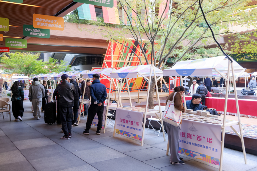百余个书摊在广场上次第铺开,年轻藏家拍下绝版藏品,游客们在书摊前流连忘返……刚刚过去的周末,申虹嘉“连”华・2025年首届上海全国连环画集市在瑞虹天地月亮湾广场吸引市民驻足。
